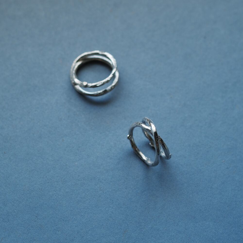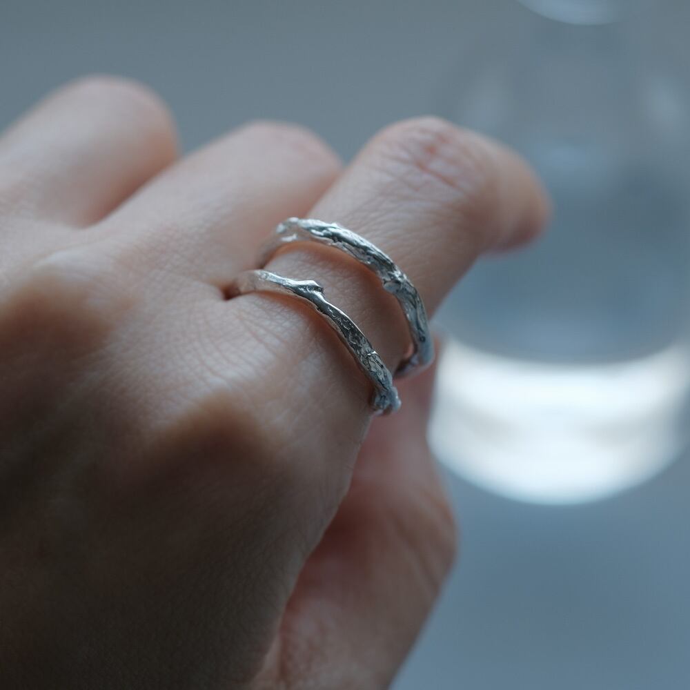 細枝 テクスチャー 2連 リング シルバー925 メンズ ユニセックス