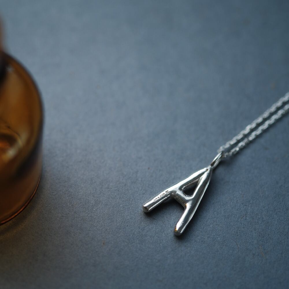 A) 手書き風 イニシャル アルファベット ネックレス シルバー925 メンズ ユニセックス