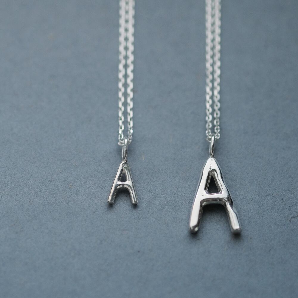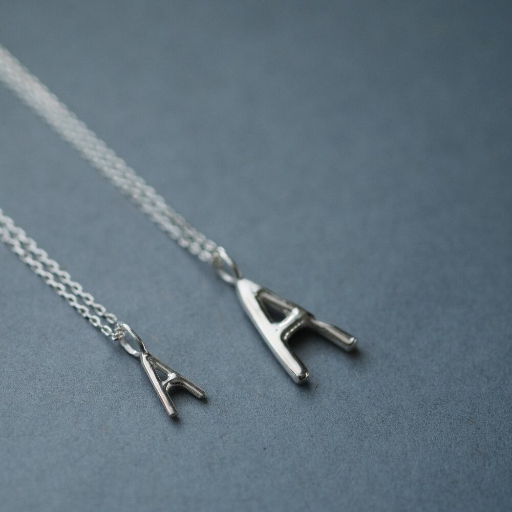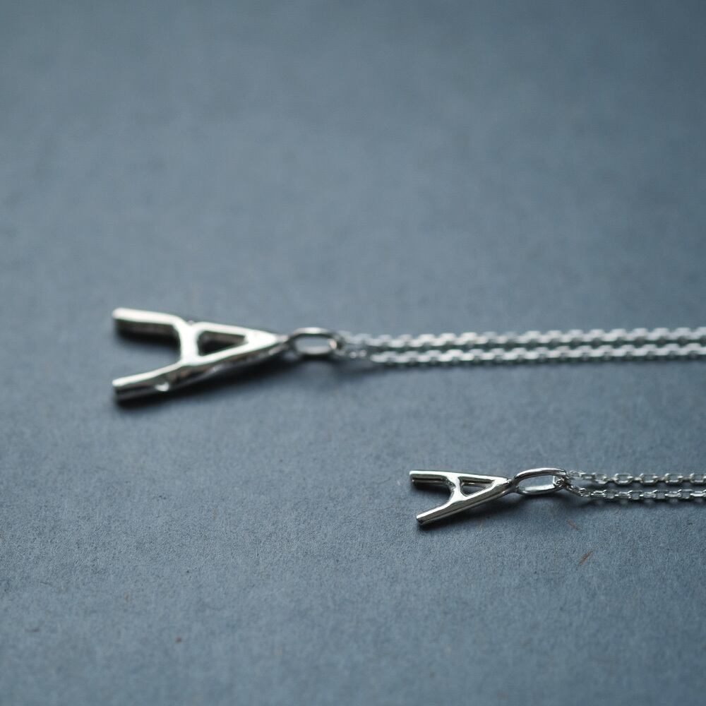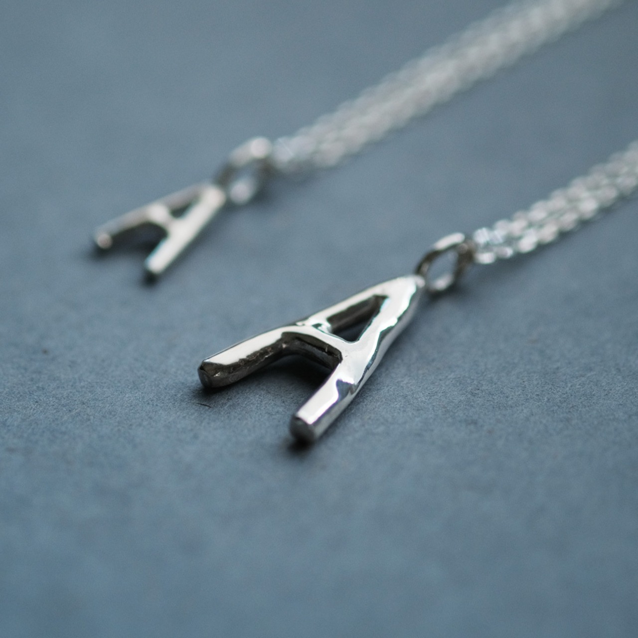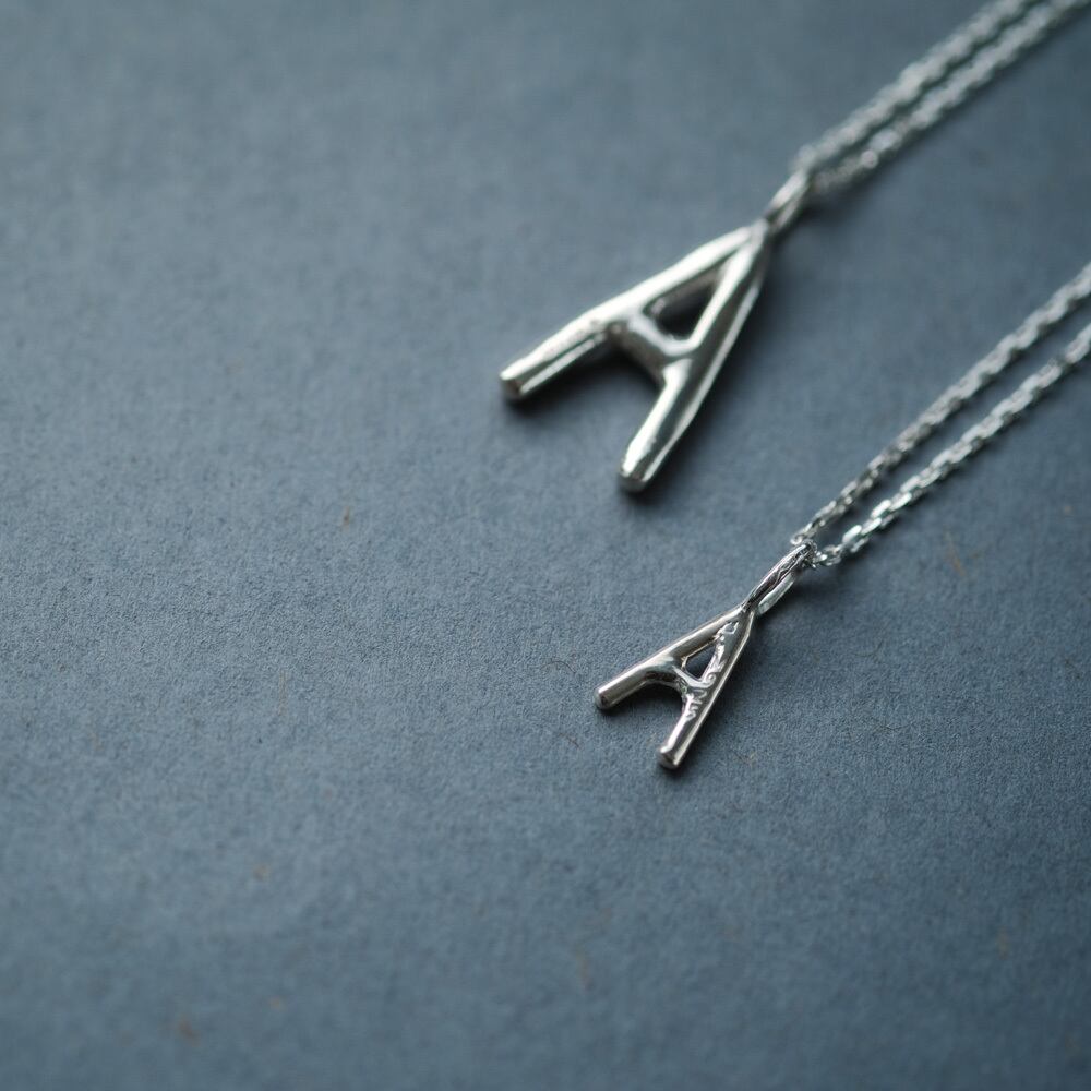2コset) A 手書き風 イニシャル アルファベット ペア ネックレス シルバー925