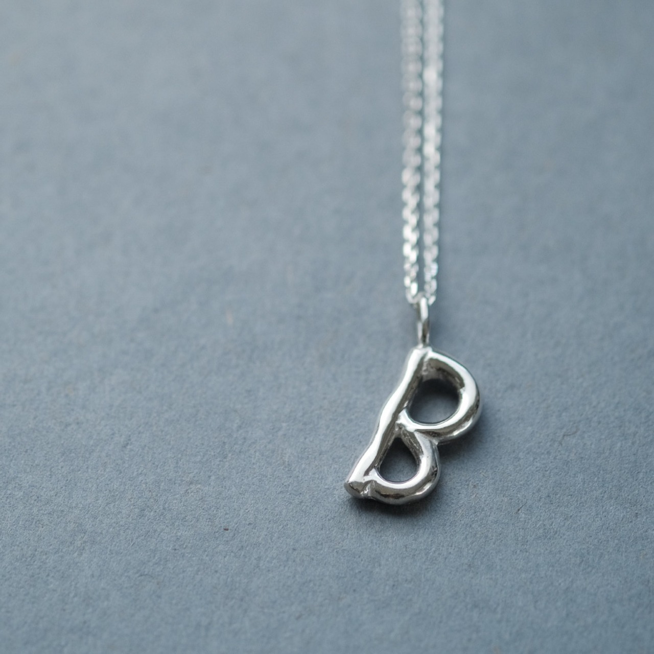B) 手書き風 イニシャル アルファベット ネックレス シルバー925 メンズ ユニセックス