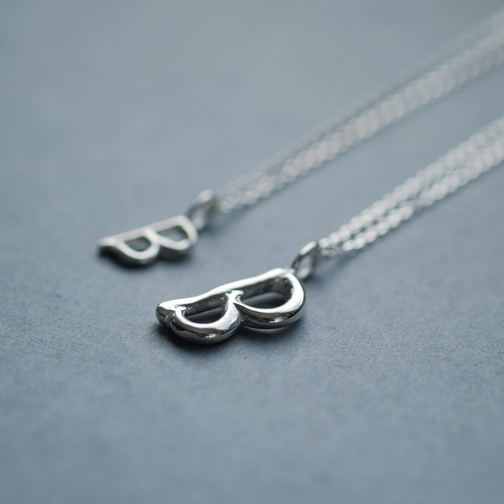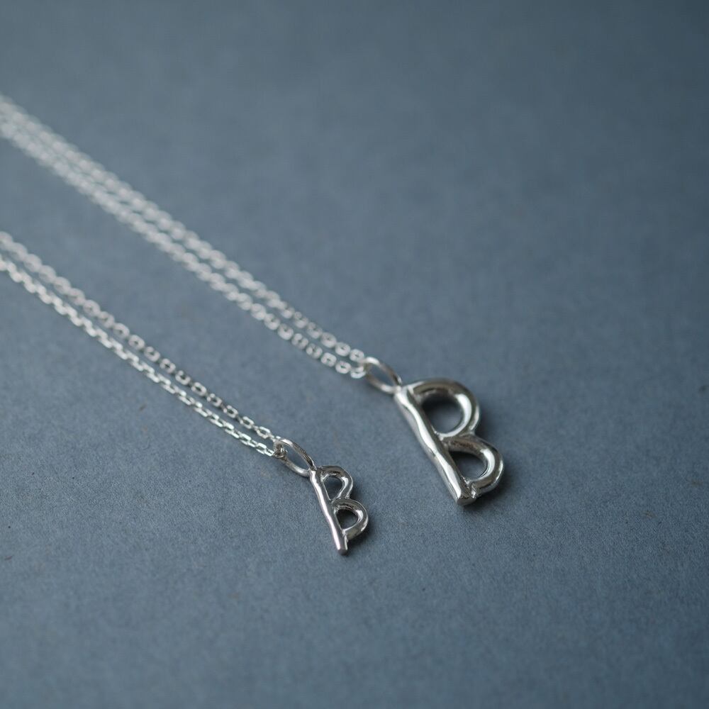 2コset) B 手書き風 イニシャル アルファベット ペア ネックレス シルバー925