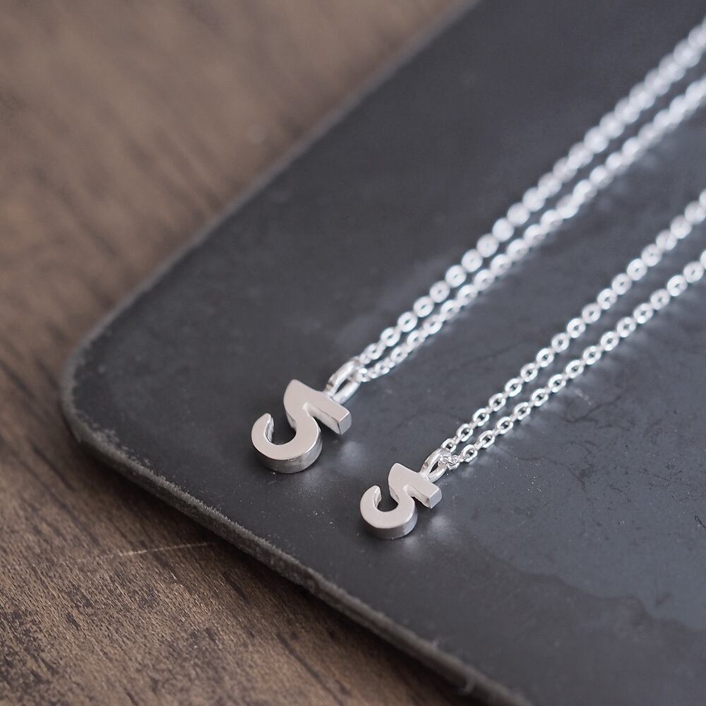 2コset) 数字 5 ペア ネックレス シルバー925
